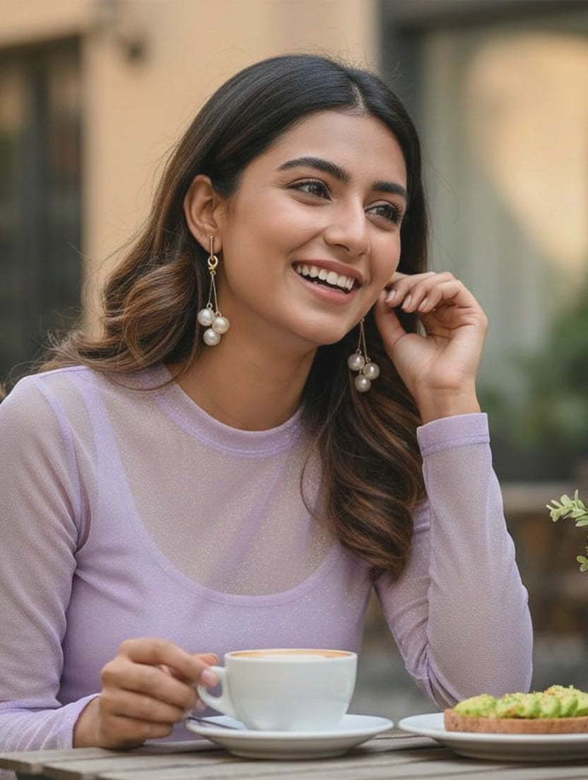 - Elegant Pearl Cluster Design – Three beautiful pearl beads create a classy and stylish drop look.